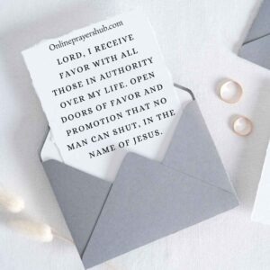 8. Lord, I receive favor with all those in authority over my life. Open doors of favor and promotion that no man can shut, in the name of Jesus.