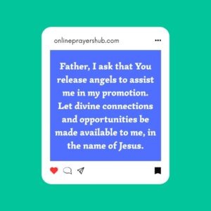 22. Father, I ask that You release angels to assist me in my promotion. Let divine connections and opportunities be made available to me, in the name of Jesus.