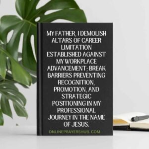 6. My Father, I demolish altars of career limitation established against my workplace advancement; break barriers preventing recognition, promotion, and strategic positioning in my professional journey in the name of Jesus.