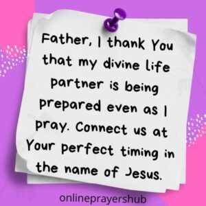 1. Father, I thank You that my divine life partner is being prepared even as I pray. Connect us at Your perfect timing in the name of Jesus.