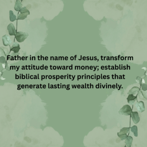 14. Father in the name of Jesus, transform my attitude toward money; establish biblical prosperity principles that generate lasting wealth divinely.