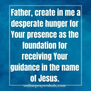 5. Father, create in me a desperate hunger for Your presence as the foundation for receiving Your guidance in the name of Jesus. (Psalm 42:1–2)