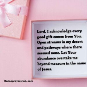 30. Father, I receive divine favor in my business, career, and finances. Let Your abundant provision flow like rivers of living water into every area of my life in the name of Jesus, Amen.