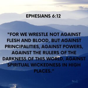 Ephesians 6:12 – “For we wrestle not against flesh and blood, but against principalities, against powers, against the rulers of the darkness of this world, against spiritual wickedness in high places.”